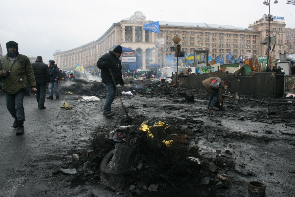 Утром "Правый сектор" заявил, что не признает перемирия, и возобновил активные действия. Протестующим удалось отогнать милиционеров с площади - обратно на Институтскую - и вновь занять улицу Грушевского.