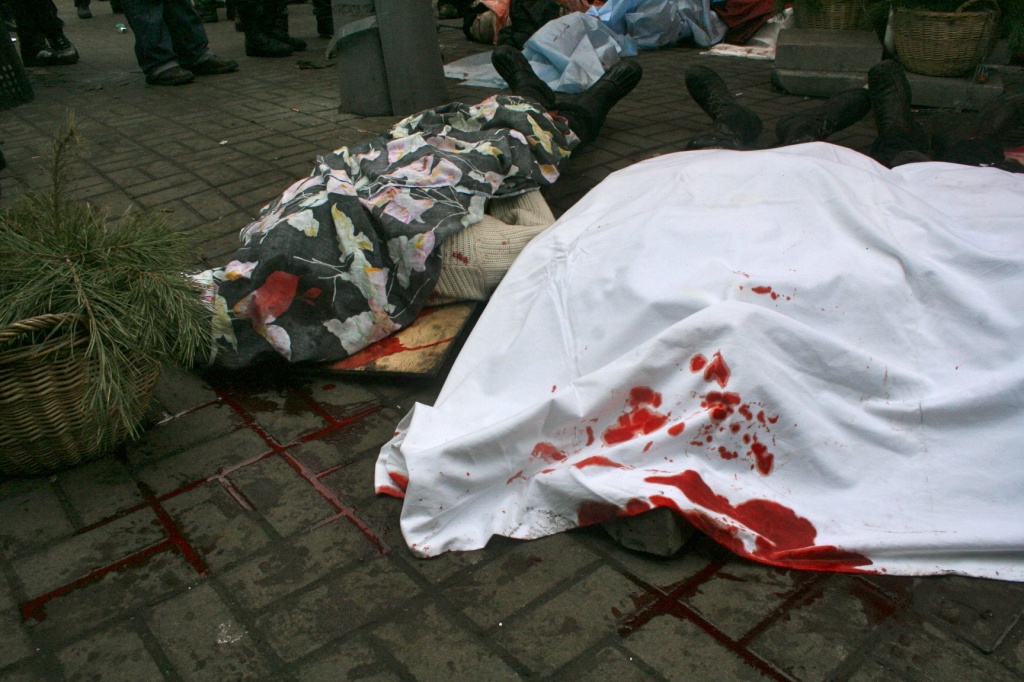 А на самом Майдане лежат десять трупов. Сейчас их отпевают. Потом попробуют опознать. Потом увезут.