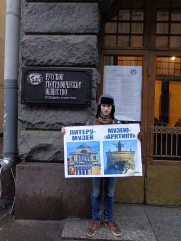 "Питеру – музей, музею – "Арктику"!" – такие плакаты увидели вчера при входе в Русское географическое общество участники собрания, посвященного обсуждению судьбы морского Петербурга