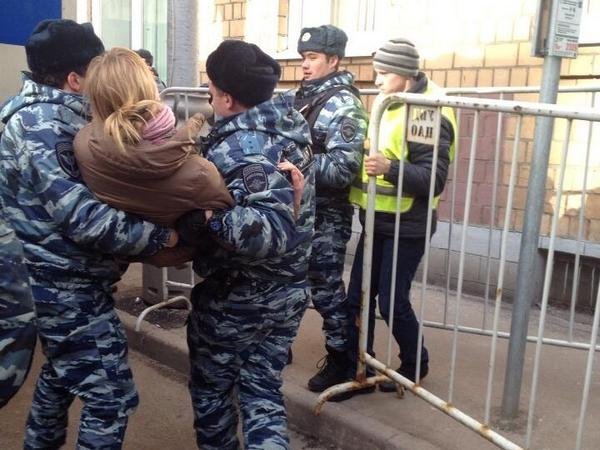 У Замоскворецкого суда Москвы начались задержания людей, которые пришли поддержать обвиняемых по «болотному делу». Как сообщает блогер Филипп Киреев, среди задержанных амнистированная фигурантка «болотного дела» Мария Баронова.
