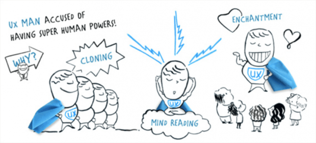В примере Axure можно увидеть, как герои помогают рассказывать историю. Их маленький UX Man появляется на разных страницах, давая дополнительную информацию о дизайне смешным и занимательным для читателей образом.
