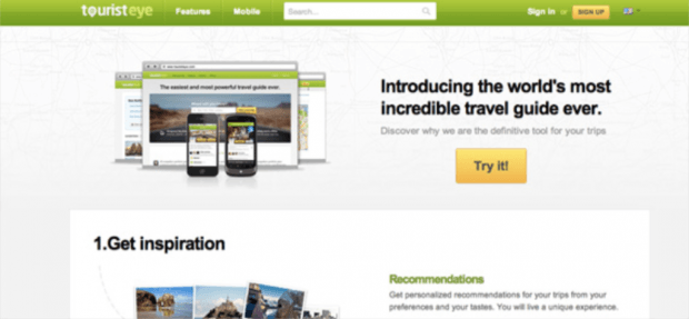 Сайт Tourist Eye является хорошим примером того, как весь текст страницы участвует в создании истории. «Тон» их текста уверенный, может быть, даже несколько самонадеянный, но в то же время очень простой и ориентированный на пользователей. Они взаимодействуют со своими посетителями очень последовательно, и посещение сайта похоже на общение с реальным человеком, а текст превращается в историю, которая помогает осуществлять это общение.