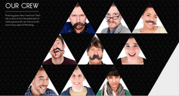 Личностный подход помогает Fancy Rhino рассказать историю о себе. Команда представлена смешными фотографиями и персональными описаниями каждого из участников. Так, например, один из членов команды описывает другого следующим образом: «Порой мы думаем, на самом ли деле Дрю – человек, или он полностью состоит из мечтаний, амбиций и необузданного творчества». Последовательность дизайна, фотографий и текстов рассказывает очень живую историю о том, кто эти люди: группа внушающих симпатию профессионалов, которые преданы своей работе.