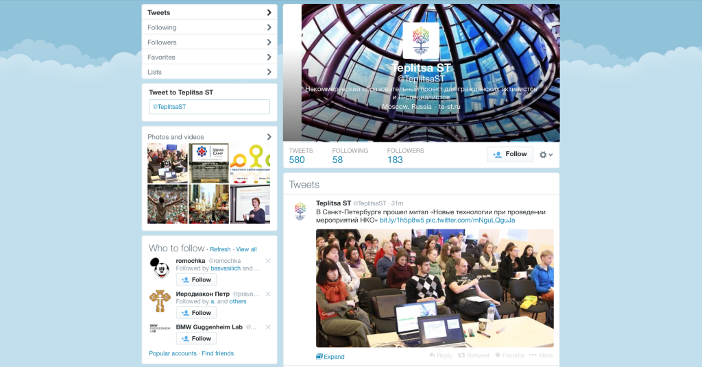 - @TeplitsaST — твиттер Теплицы социальных технологий. В своем твиттере мы делимся с читателями ссылками на наши новые материалы и статьи.