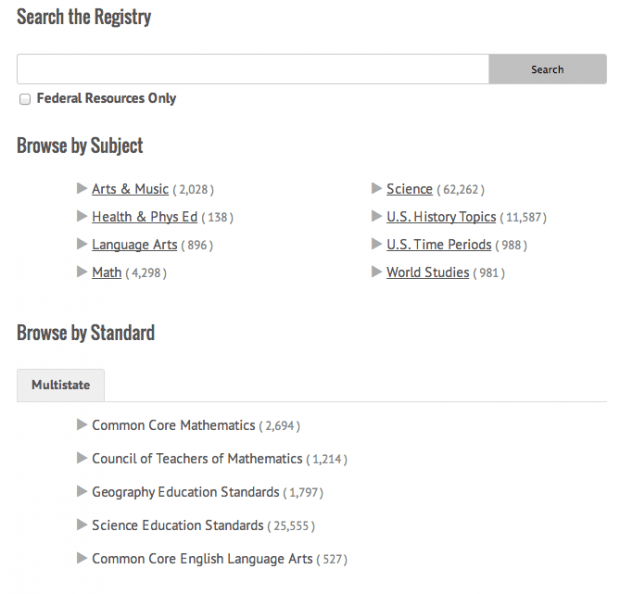 Образовательные ресурсы, представленные в архиве «The Learning Registry», числятся уже сотнями тысяч − это сайты по истории и науке, онлайн-книги по искусству, методические сборники по математике и т.д. Помимо Министерства образования, в первичном наполнении архива приняли участие Министерства обороны, энергетики, Национальный научный фонд, НАСА, однако теперь свой вклад может внести каждый.