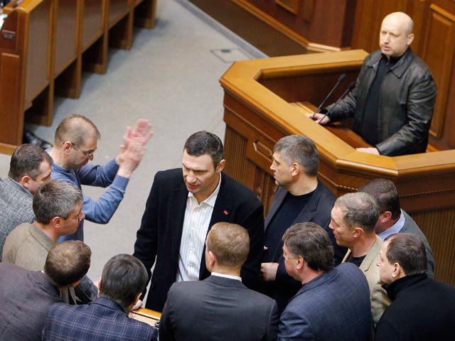 Спикер Александр Турчинов объявил о перерыве в работе рады до 10:00 воскресенья (12:00 мск.).