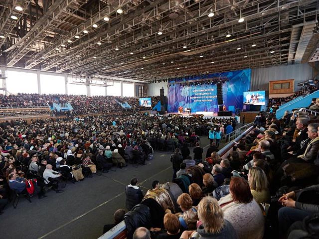 В Харькове проходит съезд депутатов юго-восточных регионов Украины. Помимо делегатов, на съезд собрались майдановцы, пикетирующие здание Дворца спорта. "Украинская правда" сообщает, что правоохранители отняли у активистов каски и биты. Одних от других отделяет самооборона Майдана.
