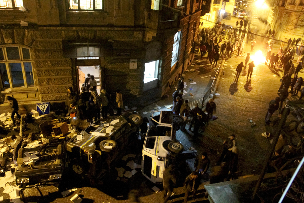 «Из Киева пошли эти страшные кадры, и весь Львов поднялся, — говорит активист Роман Кравец. — Не было какой-то явной политической силы — все как будто перемешалось. Такое ощущение, что люди стихийно стекались. Машин было как днем, хотя происходило все часов так в 10 вечера». В штурме УВД принимала участие в основном молодежь и подростки в балаклавах. Милиция не оказывала сопротивления, пассивно баррикадируясь на верхних этажах. «Начальник УВД области Рудяк договорился со штурмующими, чтобы те разрешили оставить охрану из милиции у склада с оружием, — рассказывает Кравец. — Но остальное все разгромили. Люди были очень злы». В процессе захвата из окон выкидывались портреты Януковича, офисная мебель, документы…
