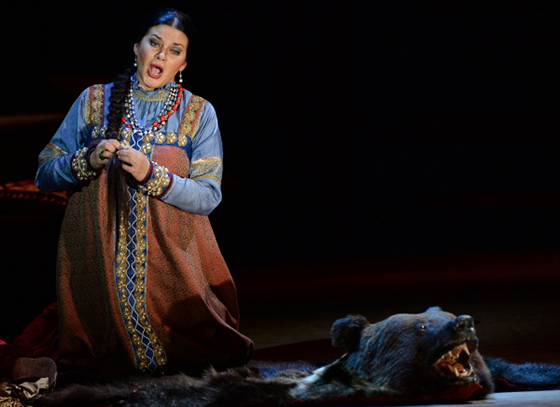 © РИА Новости Строгой музейной реконструкцией, эдаким аутентизмом для гурманов это тоже не является. У спектакля есть новые авторы: режиссер Юлия Певзнер, сценограф Альона Пикалова, художник по костюмам Елена Зайцева. Хотя в скобках и написано: по мотивам сценографии Федора Федоровского, 1955 г. Но в каноническую статику бревенчатых теремов порядком добавлено простодушного мельтешения по сцене. В отличие от еще одного «исторического» спектакля в репертуаре Большого — «Бориса Годунова» — актерам тут редко удается постоять истуканами. Внесены в меру смелые штрихи, способные вызвать оживление в публике. Любаша, расплетя косу и решительно скинув верхнюю одежду, пытается вернуть в свои объятия Грязного, который перед этим мается в эротическом сне, мечтая о Марфе. Опричники с добычей, окружив Ивана Грозного на живой лошади, демонстрируют мрачные страницы русской истории. А если кому в это время вспомнятся ряженые казаки с нагайками, так надо меньше в интернете сидеть.
