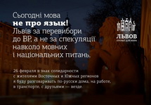 Во вторник представители львовской интеллигенции направили и.о. президента Александру Турчинову, формирующемуся кабинету министров и Верховной раде открытое письмо с требованием не разворачивать кампанию против русского языка. В числе подписантов письма - Юрий Шухевич, основатель УНА-УНСО и сын национального героя, командира Украинской повстанческой армии Романа Шухевича, а также ректор Львовского национального университета, бывший министр культуры Иван Вакарчук, в свое время выступавший одним из главных идеологов украинизации.