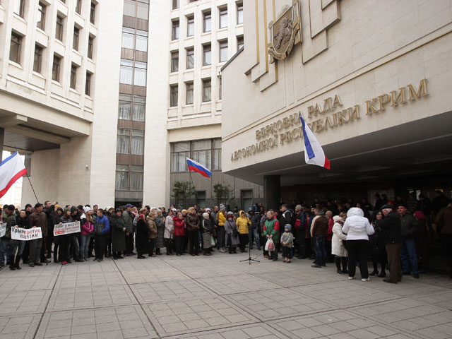 В Симферополе в ходе внеочередной сессии Верховного совета Крыма руководство республики решило не рассматривать вопрос ее отделения от Украины. В ожидании решения властей возле здания парламента собрались две группы митингующих. На одном митинге пророссийски настроенные граждане требовали от руководства региона не признавать новую киевскую власть и вернуться к широкой автономии. На другом крымские татары и сторонники движения "Евромайдан-Крым" выступали с поддержкой нового руководства Украины. Местные журналисты утверждают, что в столкновениях есть жертвы, причем среди пророссийских митингующих.
