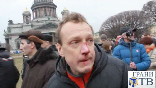 В Петербурге задержаны более 30 участников антивоенного схода в сквере на Исаакиевской площади. Всего на акцию вышли около 400 человек, сообщает корреспондент "Граней". В сквер пришли сторонники аннексии Крыма, в том числе депутат петербургского ЗаКСа Виталий Милонов, который лично отбирал плакаты и оскорблял пожилых антивоенных активистов. Возникли потасовки, есть пострадавшие. По предварительной информации, у одного из них сломан нос (этот момент запечатлен в нашем видеорепортаже). Один из сторонников Милонова облил фекалиями пожилую художницу Елену Осипову.