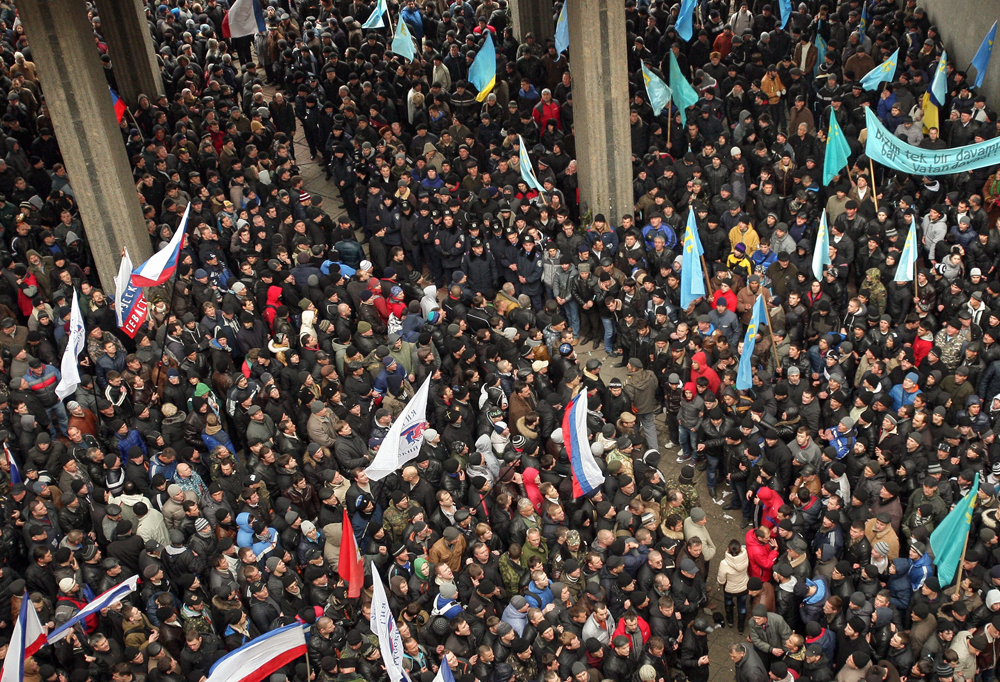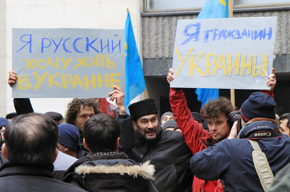 Татары, которых в Крыму проживает около 260 тыс. (из двухмиллионного населения полуострова), — самая организованная сила. И эта сила не просто не хочет никакого воссоединения с Россией — готова браться за оружие для того, чтобы остаться с Украиной. Татарские активисты публично говорят на украинском, а во время демонстраций крики «Аллах акбар» звучат наравне с майдановским «Слава Украине».