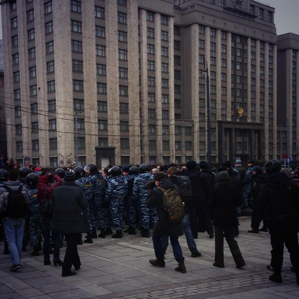2 марта противники войны с Украиной провели народный сход на Манежной площади. Численность собравшихся, по оценке участников схода, составила около 300 человек. Десятки из них задержаны