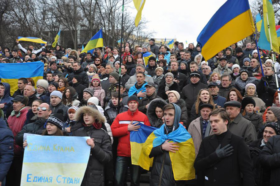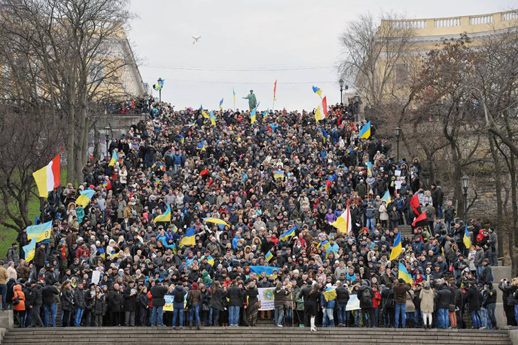 Конечно, среди русскоязычных есть и такие, кто совсем не против ввода русских войск. Они тоже митингуют, но их гораздо меньше. На самую большую пророссийскую демонстрацию в Одессе выходило около 5000 человек. На проукраинскую — от 12 до 20 000. И это в городе, который никогда не считал себя Украиной. Десятитысячные митинги прошли в Днепропетровске, Николаеве и Кривом Роге. Люди несли украинские флаги, пели украинский гимн и кричали «Слава Украине», но друг с другом они говорили по-русски.
