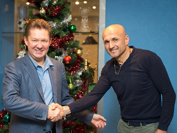 "Сегодня на базе в Удельном парке состоялась встреча председателя правления ОАО "Газпром" Алексея Миллера с главным тренером "Зенита" Лучано Спаллетти, сообщает официальный сайт сине-бело-голубых. На встрече обсуждались итоги первой части сезона-2013/14 и дальнейшие перспективы развития команды. Миллер и Спаллетти поздравили друг друга с наступающим Рождеством и Новым годом, пожелали друг другу успехов и удачи в 2014 году, а также новых побед "Зениту"".