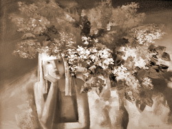 У Игоря Макеева на картинах вокруг женщин не так тесно. Скорее, они предпочитают задумчивое одиночество. Если у Иванюка гротесковые баллады, то у Макеева романтические сказки. Таким сказкам требуется что-то оранжевое, сиреневое… Игорь Макеев таких красок не жалеет. И ещё очень важен свет и воздух – в известной Макееву пропорции. Если воспользоваться термином Иванюка, Макеев предпочитает «аксонометрию оптимизма».