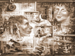 На открытии новую выставку назвали «интеллектуальной игрой». Не знаю, игра ли это, но то, что художники прикладывают к холсту не только краски, очевидно. Без интеллектуальных усилий не обошлось. Достаточно назвать работы Иванюка: «Аксонометрия оптимизма», «Аксонометрия пессимизма» [ 1].