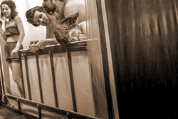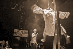 Самые запоминающиеся сцены в «Танго» театра «А.Р.Т.О.» не связаны с «жестокостью»: превращение в гейшу с помощью валика, разочарование облачённого в рыцарские доспехи Артура и, конечно, заключительная сцена «головой об стену».