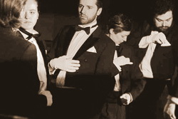 Однако со спектакля «Танго» не только уходили, но на него неожиданно и приходили. Когда герои «Танго» стали одну за другой распахивать двери театральных кулис, зрителям, сидевшим в самом центре сцены, открылся небывалый вид: театр, просматривающийся насквозь. И в это время на заднем плане появился молчаливый человек (охранник?). Он некоторое время там маячил, словно ещё один герой абсурдистской пьесы, вызывающий у зрителей дополнительный незапланированный смех. Этот человек непонимающе глядел на то, что происходит на сцене, – не ведая того, что неожиданно оказался в центре внимания. Он вполне заслужил, чтобы выйти на поклон.