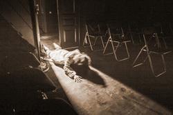 После спектакля режиссёр Андрей Калинин рассказал о том, что в Москве даже маленький зал, рассчитанный на пятьдесят мест, не всегда заполняется. На мой вопрос: «Кто обычно уходит со спектакля?» - режиссёр Андрей Калинин ответил: «Уходит тот, у кого вникать нет сил, кому долго искать дверь» (дверь на выход такой зритель всегда найдёт даже на ощупь в темноте).