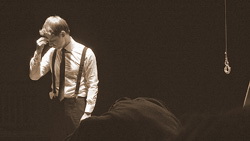 Один Артур олицетворяет порядок. На нём строгий костюм. Он точно знает, что надо делать. Он полностью убеждён в своей правоте. Он производит впечатление единственного нормального человека на этой сцене. Есть, правда, ещё и зрители, но с ними тоже пока что не всё ясно. Их же честно предупреждали, что зрелище им предстоит увидеть не для слабонервных, что их «подведут к краю пропасти» и тому подобное.