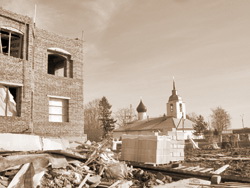 О соседстве ценных памятников архитектуры, тем более церквей, в атеистическом государстве (и в частности, в руководстве Псковской области) не думали до 1960 года, пока большая часть псковских церквей не оказалась принятой под государственную охрану. [16] Потом лет двадцать-тридцать тоже не думали по инерции, но опасались – все же существовали органы охраны памятников и открыто заявлять о том, что надо или не надо сохранять старину, было как-то не комильфо: а вдруг подумают, что чиновник не соответствует занимаемой должности, культуры, там, не хватает или ума… Бывали, конечно, такие единичные случаи, но они и сегодня звучат как исторические анекдоты о псковских руководителях.