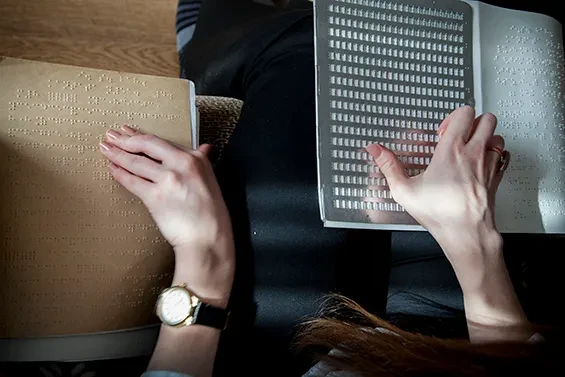 Эти затейливые пупырышки, выступающие мелким бисерным острием, она бегло и невесомо «читает» пальцами. Она считает Брайля гением и сокрушается по поводу того, что «сейчас Брайля все больше заменяют технологиями, и дети не любят учиться читать по Брайлю. Это трудно. Но ведь и зрячему ребенку трудно учиться читать. Надо все-таки заставлять». Ее самый чувствительный палец — указательный на левой. Она мне предлагает попробовать. Я нажимаю пальцем на лист: «Вы чувствуете? Вот две точки — это буква К, а одна — это А. У одного символа не может быть больше шести точек». Я чувствую только укол.