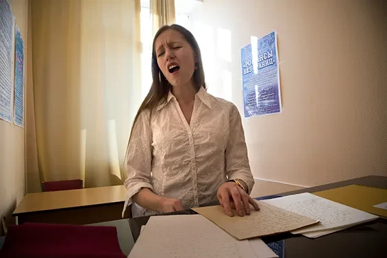 «Поставь звук на воздух! Поставь точнее!» — Татьяна Дмитриевна показывает рукой этот самый воздух, который пробивается сквозь шторы с острым мартовским воздухом. Нафсет не видит руки учителя, как не видит все вокруг уже 26 лет, но следующий пассаж арии Генделя обретает требуемую воздушность.