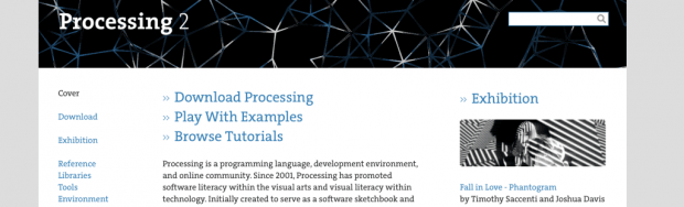Processing − открытый язык программирования, основанный на Java. Processing дает возможность быстро и легко создавать мультимедиа приложения − графику, анимацию, разнообразную визуализацию и интерактивные приложения. Многие сложные и красивые дизайн- и арт-проекты были созданы с использованием данного языка.