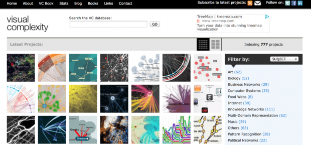 Сайт Visual Complexity содержит множество примеров красивых и сложных визуализаций на самые разные темы − от искусства и биологии до транспортных сетей.