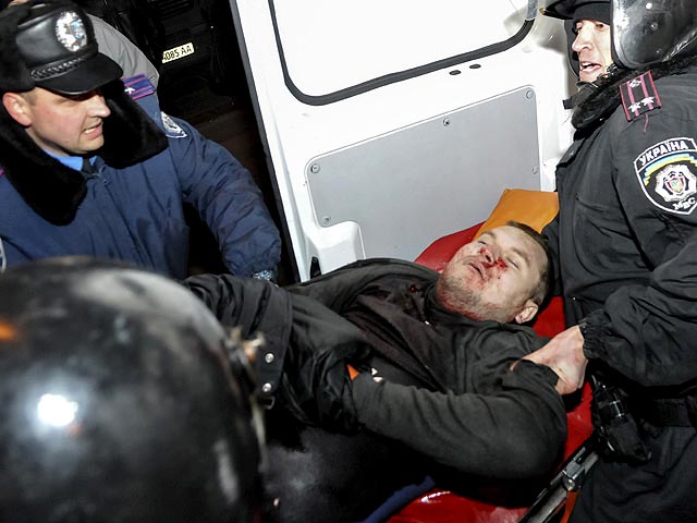 Как уточняет МВД, среди пяти пострадавших - милиционер и член организации "Правый сектор". Всего в ОВД доставлено 32 человека со стороны "Правого сектора" и шесть пророссийски настроенных лиц.