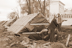Я когда это увидел, сразу подумал: почему бы не закрыть раскопы прозрачным пластиком или стеклом и не сделать здесь археологический музей под открытым небом, - делится со мной мыслями социолог Дмитрий Лебедев – мы встретились как раз около раскопа. – Это же будет пешеходная зона, транспортная нагрузка на территорию небольшая – по-моему, это был бы очень интересный проект.