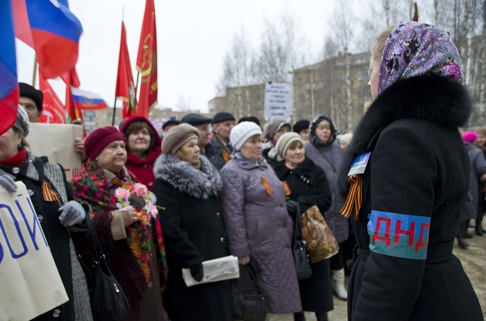 Люди стали стекаться на Театральную площадь Сыктывкара примерно около 17:30. Место в первых зрительских «рядах» около ступенек Государственного театра оперы и балета Коми поспешили занять представители КПРФ и ЛДПР. Рядом с ними расположились пенсионеры и ветераны, члены городской общественной организации ветеранов войны, труда, Вооруженных сил и правоохранительных органов, которая выступила инициатором проведения мероприятия.