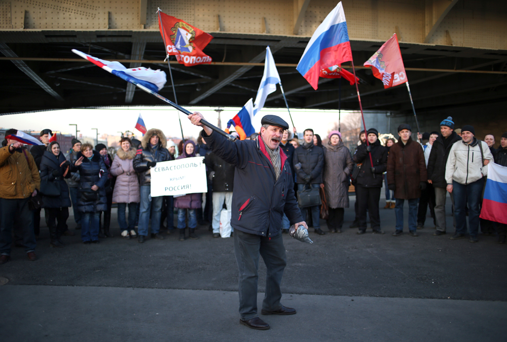 Москвичи собрались в Парке Горького, чтобы выразить поддержку жителям Крыма. 1 марта 2014 г.