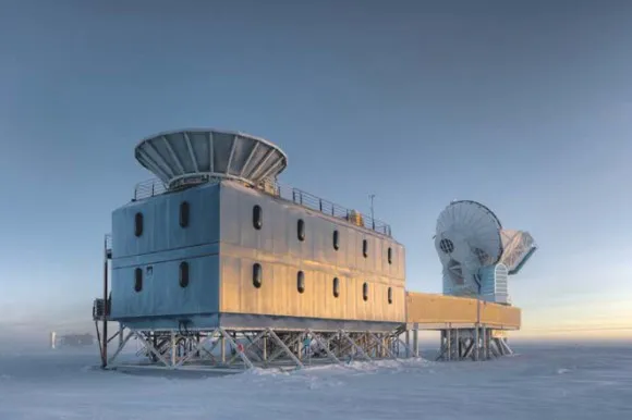 BICEP2 — довольно маленький по размеру микроволновый телескоп (см. фото на левом развороте). Угловое разрешение — всего полградуса, зато очень низкие шумы и высокая чувствительность. Это, в частности, достигается за счет охлаждения жидким гелием основных элементов телескопа. Измерения, результаты которых только что опубликованы, проводились три сезона с 2010 по 2012 год.