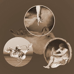 Участники театральной выставки это доказали наглядно. Они действовали с оглядкой. Выставка и сама по себе была ретроспективна и включала в себя избранное, показанное в разное время в других местах. Но это было ещё во многом и материализованное желание изобразить, а то и сфотографировать прошлое. То есть пока обладатели цифровых камер спешно ловят момент и фиксируют сегодняшние прекрасные и не очень прекрасные мгновения, некоторые неторопливые художники погружаются в историю и пытаются так или иначе зафиксировать то, чего уже нет, или то, до чего не дотянуться – допустим, до космоса. Это ещё одна игра воображения, в которой проигравших быть не должно. Таким образом, Пушкин у Ильи Сёмина приравнивается к Гагарину. Космическая тема возникает и у Андрея Яковлева.
