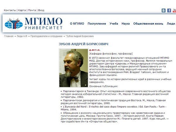 - Комментарий об увольнении А.Б. Зубова на портале МГИМО