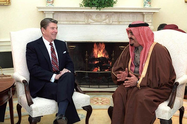 Согласно популярной версии, крушение Советского Союза было ускорено падением цен на нефть в середине 1980-х годов. Конспирологическая теория гласит, что обвал цен произошел в результате договора, заключенного между президентом США Рональдом Рейганом и королем Фахдом. Был договор или нет, но снижение цен на нефть и ослабление Советского Союза оказалось в интересах обоих государств: Соединенные Штаты остались единственной сверхдержавой, а саудиты не допустили усиления влияния Москвы в исламском мире через Афганистан.
