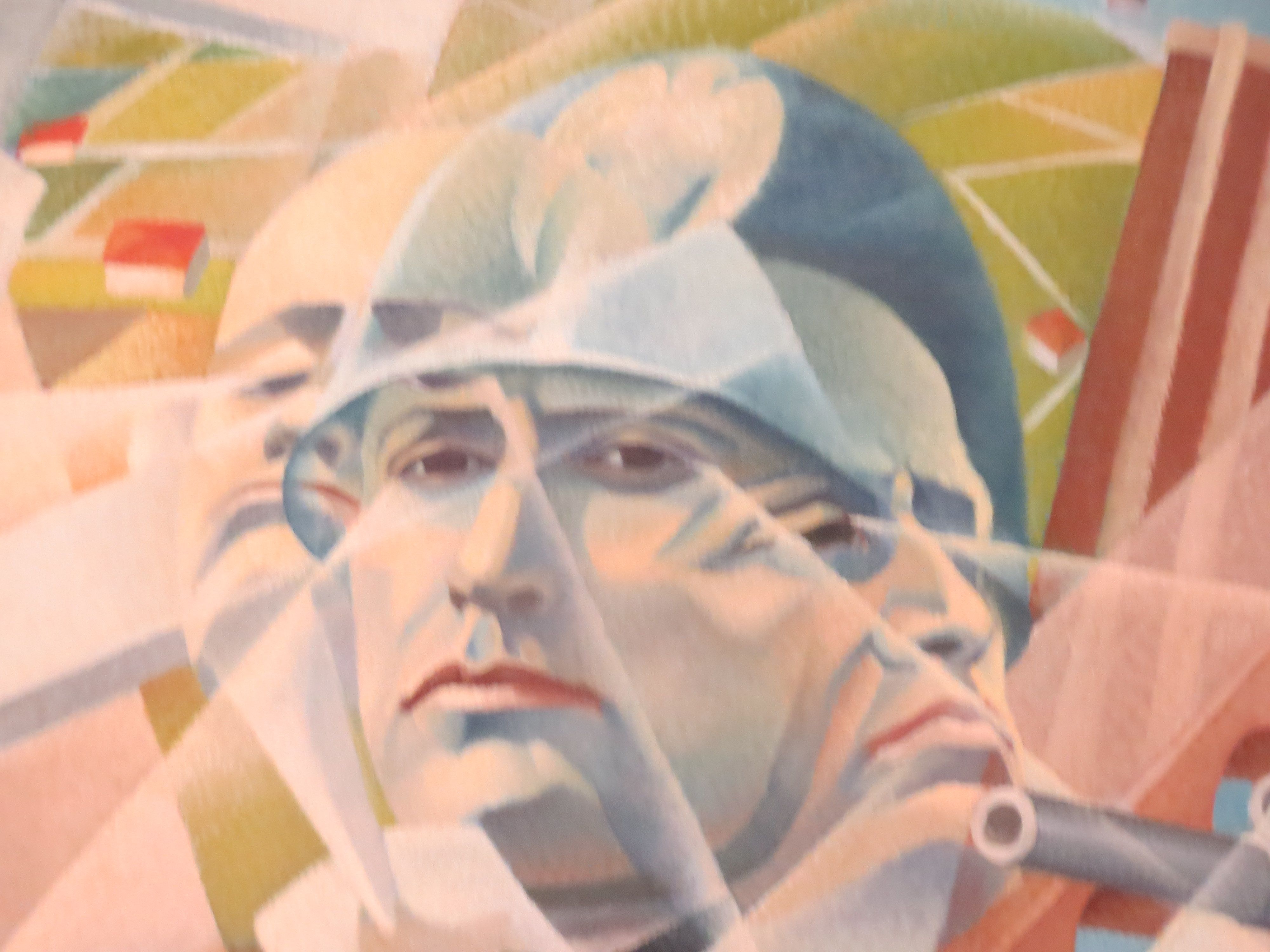 Увлечение авиацией породило особый, обильно представленный на выставке вид живописи: “аeropittura”. Последний взлет футуристов, она позволяла соединить их любимые мотивы: скорость и новизну экспрессии. Характерно, однако, что в программной картине мэтра авиационной живописи Татто изображен самолет, парящий над Колизеем. Будущее уже не отрицало прошлое, а опиралось на него. Муссолини, преодолев Медичи, теперь хотел быть новым Августом, и ставшее сервильным искусство вернулось к традиции, опошлив ее.