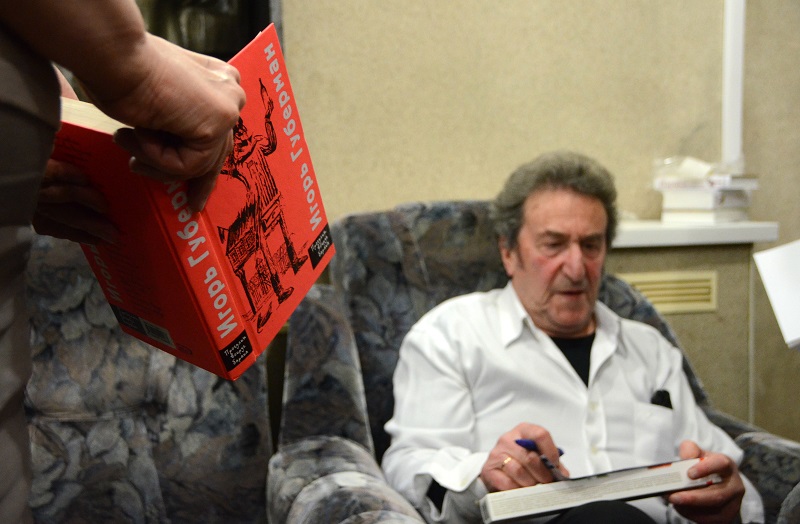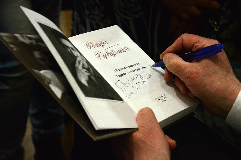 При этом поэт согласился провести импровизированную автограф-сессию. Он сел на диванчике около входа на сцену, место рядом с которым оккупировали ценители его творчества. Люди просили подписать книги для себя, своих родственников и друзей.