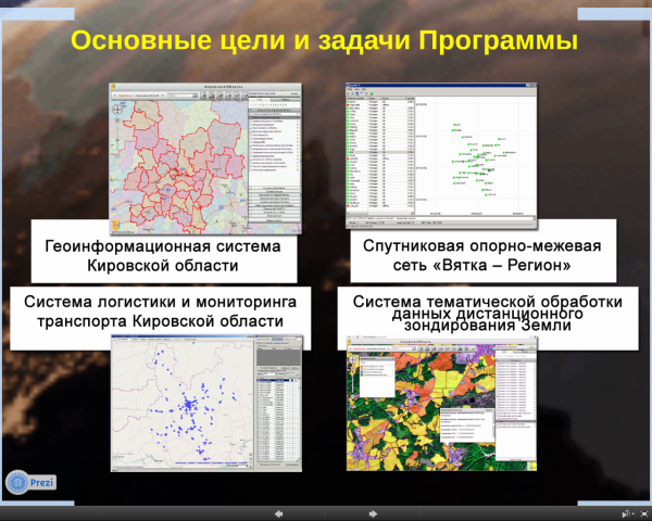 Еще в декабре 2009 года Кировская область одной из первых в России подписала соглашение о взаимодействии с Федеральным космическим агентством. Также мы приняли на 2011-2013 гг. целевую программу «Использование результатов космической деятельности в интересах социально-экономического развития Кировской области». Вот ее основные задачи: