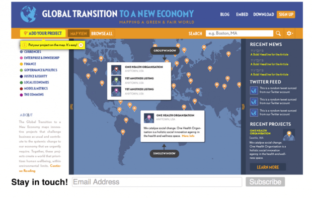 Все проекты, представленные на карте, принадлежат к конкретной цветовой категории − финансы, местные экономики, сообщества и т.д. Пользователи могут сами предлагать проекты для занесения в базу. Карта пока находится в режиме обслуживания и в скором времени вновь откроется для всех желающих.