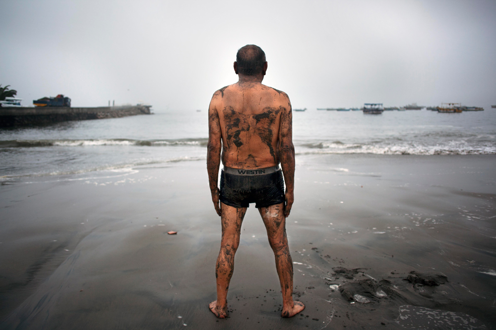 Утро на пляже Плайя де Пескадорес. 71-летний Теодосио Перес после утренней зарядки. Через несколько часов здесь начнется эвакуация. Лима, Перу, 2 апреля 2014 г.