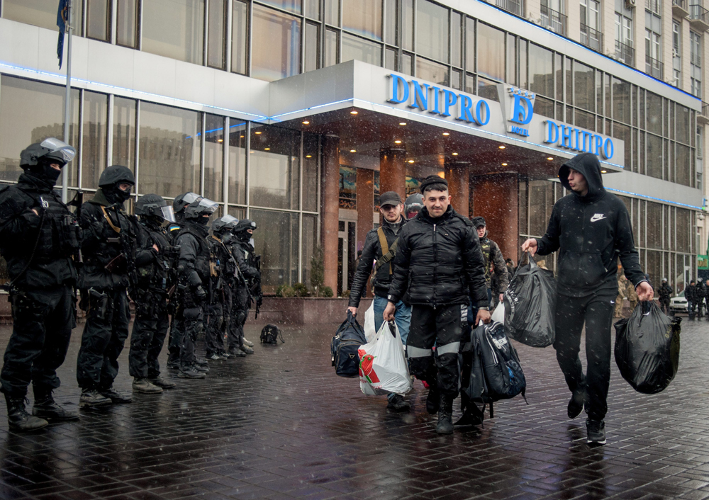 Силам правопорядка удалось заставить активистов «Правого сектора» освободить гостиницу «Днепр» без единого выстрела. Киев, 1 апреля 2014 г.
