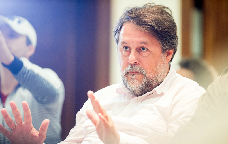 © Сергей Михеев/Коммерсантъ Если я пишу интервью (хотя в моих фильмах как таковых интервью очень мало), то стараюсь снимать на очень длиннофокусную оптику, чтобы человек вообще не слышал и не видел оператора. Если позволяет квартира, то камера снимает это вообще из какой-то дальней комнаты через проемы, а сам я сажусь, переключаю внимание человека на себя, и когда мы с ним общаемся — а это именно общение, а не интервью, — я позволяю себе рассказать какие-то свои истории. То есть наша встреча превращается в обмен историями. В этих историях я как бы даю пример степени откровенности, задаю этот тон, рассказываю какие-то достаточно личные вещи.