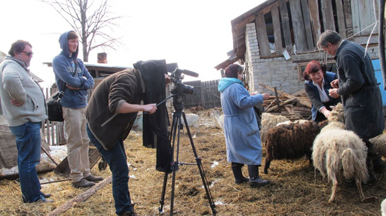На съемках фильма «Труба» И это сложнее, чем игровое кино, — сложнее в том смысле, что на съемочной площадке игровой картины все работают на результат: актеры, операторы, осветители, ассистенты, администраторы, массовка. Все работают на прописанный в сценарии формат. В документальном кино кроме тебя и оператора на тебя никто не работает, все работают против тебя. И ты должен в этом сопротивлении выловить, взять свой улов. Это совершенно иной принцип творчества. Есть, конечно, режиссеры, которые педантично дожимают ситуацию до своей домашней заготовки. Иногда и у меня бывают такие картины, но это, как правило, если ничего не идет, вообще ничего не происходит: тогда ты работаешь на заготовках. Это, конечно, не сценарий, скорее предварительный концепт фильма.