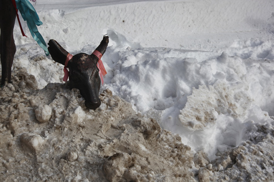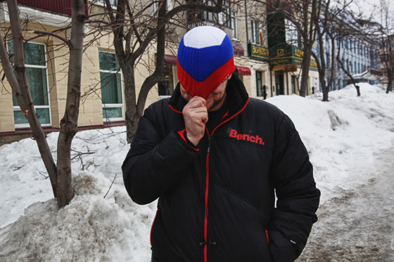 Сцена вторая. Кафе на цокольном этаже гостиницы в Южно-Сахалинске. Из разряда заведений, которые считаются нарядными и даже слегка пафосными, однако по-прежнему напоминают улучшенный вариант кафе для дальнобойщиков или караоке-бары, за которые очень обижались сограждане, увидев их на фотографиях Роба Хорнстры из Сочи. Мы завтракаем с голландским фотографом Лео Эркеном. На большом плоском экране рассказывают новости из Киева. Я вспоминаю своих украинских друзей и то, как они трепетно относились к своей Украине. Вспоминаю каштаны майдана и представляю их сейчас, эти голые деревья, совсем без коры, покрытые тонкой кожей, такие красивые и беззащитные. Наверное, на них сейчас ни один присутствующий не обратил внимания ― не до того всем. К нам подсаживается наш местный друг и пытается рассказать анекдот про «хохлов», но я упускаю место для смеха. А может, слишком громко трещит телевизор. После неловкого молчания друг заявляет: «А чо, я теперь в Крым детей по путевке буду возить, с бесплатным проездом». Послезавтра нам открывать выставку иностранцев про Россию, которую большинство местных жителей обзовет чернухой. До этого предстоит еще несколько посиделок в кафе с местными друзьями.