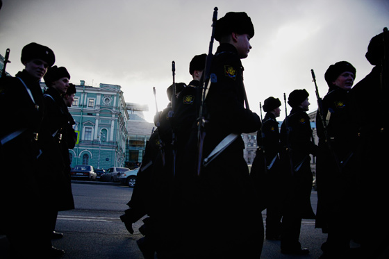 © Ирина Попова Сцена шестая. Петербург, мимо Мариинского театра марширует колонна солдатиков ― бодро, с барабанами, с винтовками наперевес, с флагами, перекрывая движение автотранспорта. Ноги задирают ― чуть ли не выше головы, как в канкане. Кажется, ляг ты им под ноги ― и тебя тоже растопчут. Только что мы шли с приятелем и говорили про Блока. И вот она, поэма «Двенадцать». Это его район.