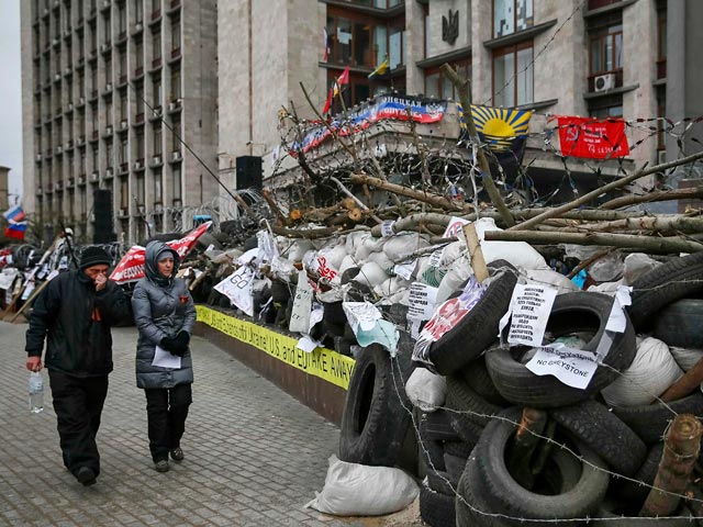 Пока премьер-министр Украины Арсений Яценюк, отправившийся в охваченные сепаратистскими настроениями восточные регионы Украины, ведет переговоры с местными властями для мирного урегулирования ситуации, находящиеся в захваченном здании облгосадминистрации в Донецке активисты готовятся к возможному штурму. Хотя глава украинского кабмина всячески заверял, что Киев не намерен разбираться с сепаратистами силовым путем, участники протестов на всякий случай продолжают возводить баррикады.